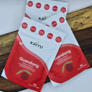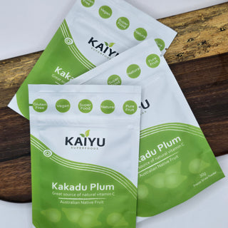 Kakadu Plums are Australia’s own natural superfood, renowned for being one of the richest natural sources of Vitamin C in the world — the flesh contains up to 100 times more Vitamin C than oranges. Kaiyu Superfoods uses premium-quality Kakadu Plums sourced from Indigenous communities in the Northern Territory, containing even higher Vitamin C levels than Camu Camu or Açaí — with far fewer food miles since they’re grown right here on Australian Country.